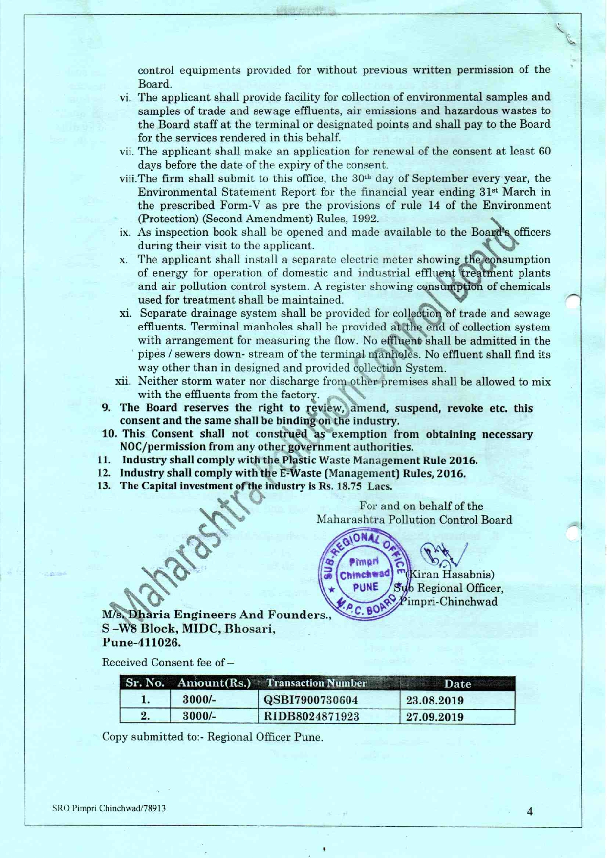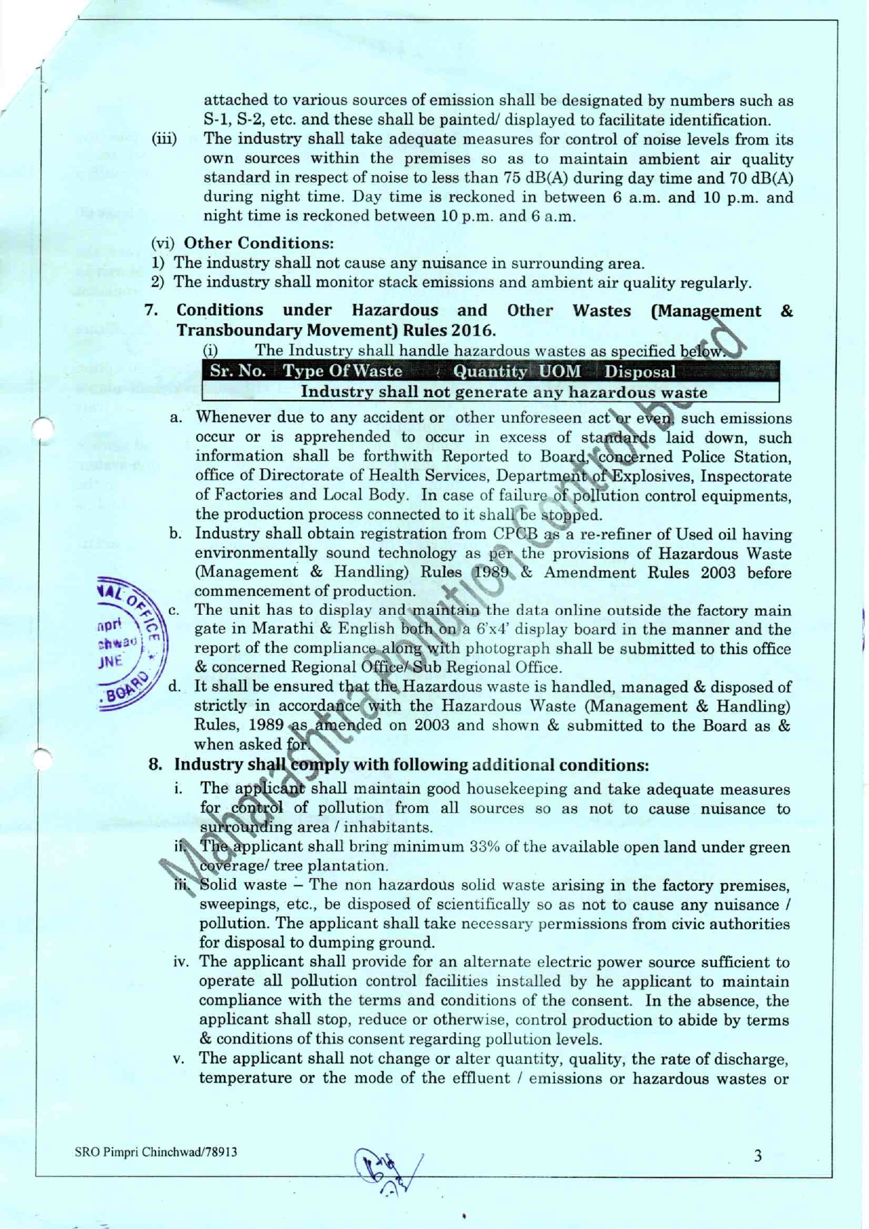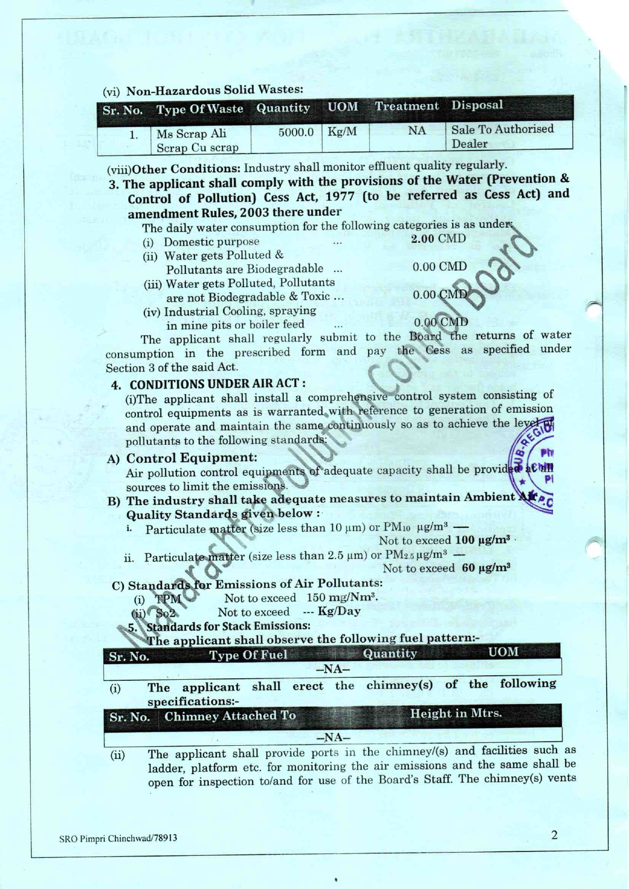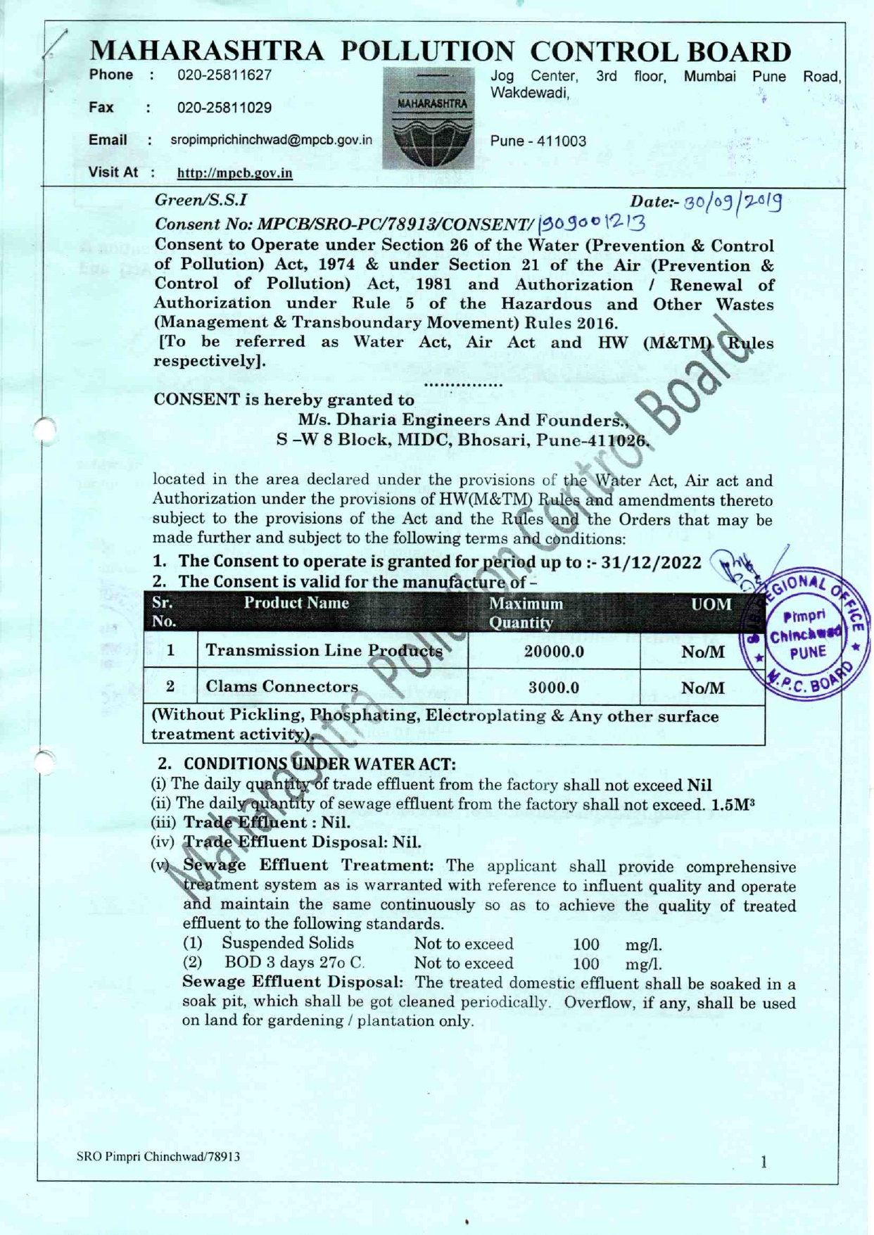 Pollution Control Certificate